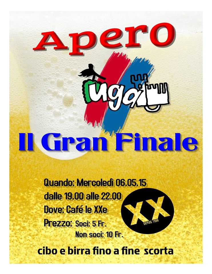 Mercoledi 6 maggio a partire dalle ore 19.00 fino alle ore 22.00 al XXeme a Friborgo ci sarà da mangiare e da bere a volontà fino ad esaurimento per il prezzo SPECIALE di soli 5 CHF per i soci e 10 CHF per i non soci!